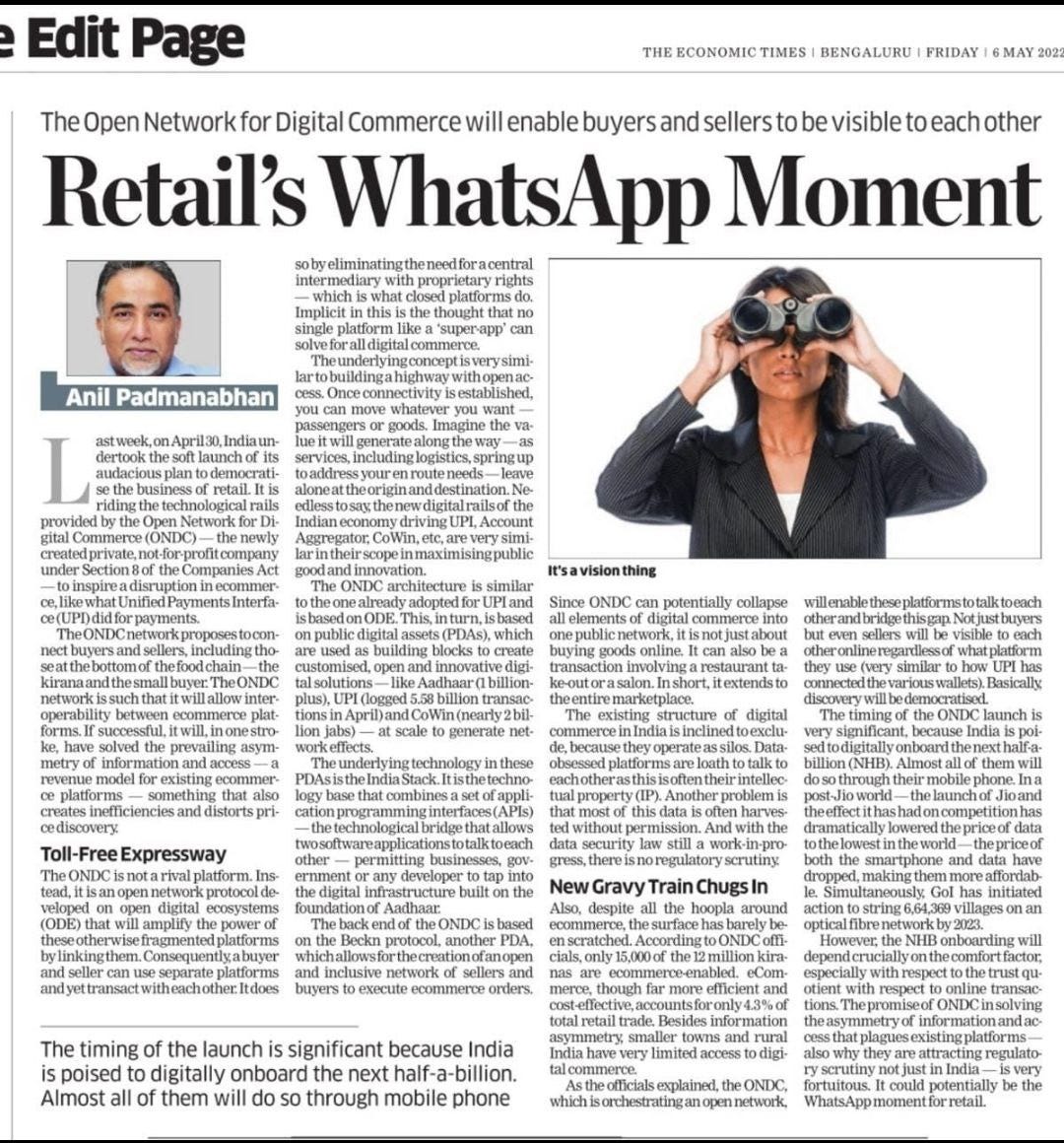 On 30 April India did a soft launch of the Open Network for Digital Commerce (ONDC). Another daring bet, but this time to disrupt the business of trade.