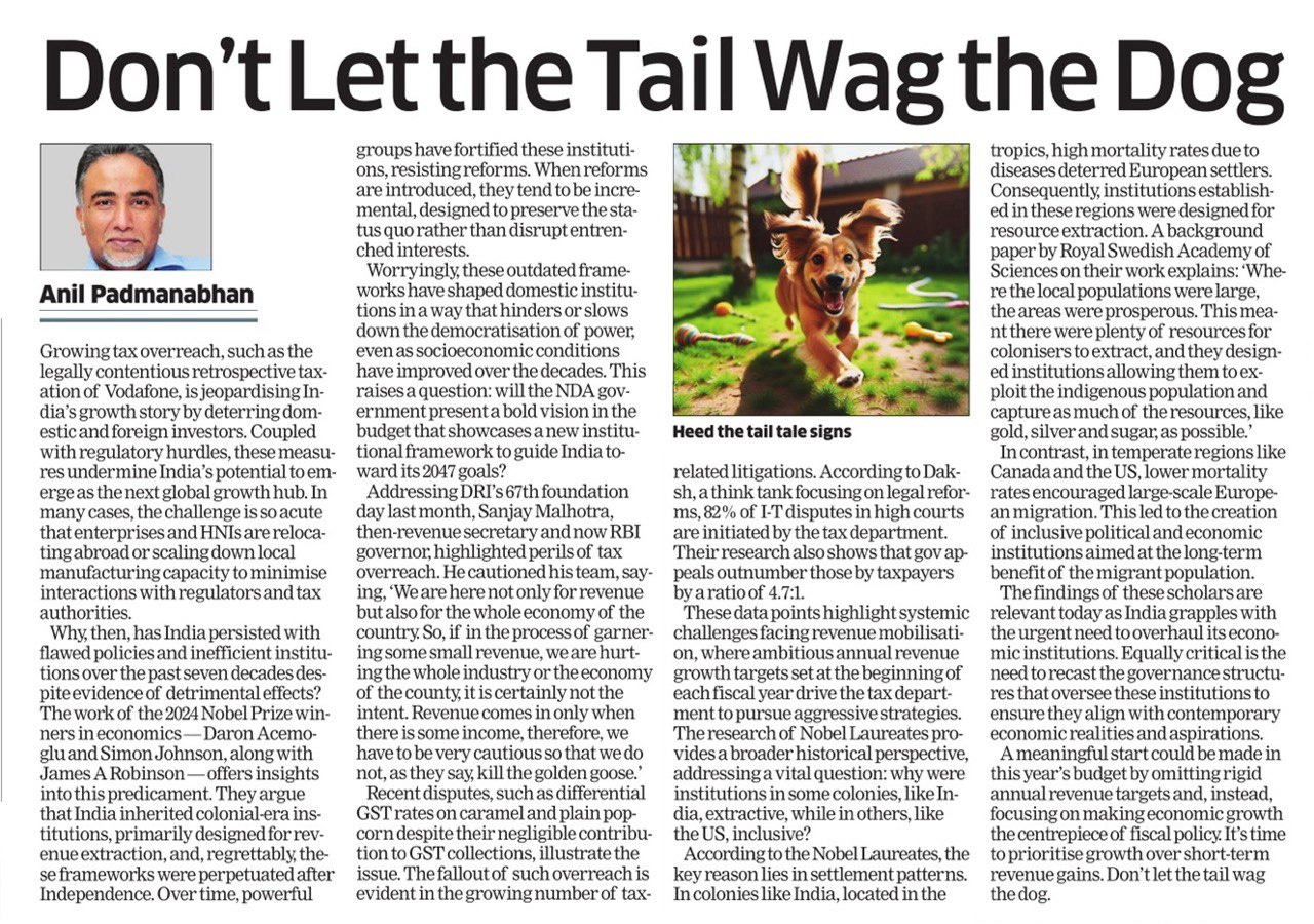 To unpack this vexing problem I spoke to Arvind Datar, Senior Advocate in the Supreme Court. Mr Datar confirmed my worst fears. His solution was very simple: stop fixing annual revenue targets. In other words treat revenue as a byproduct of economic growth. Coincidentally, this year’s Budget chose to do this. Sharing the link below.