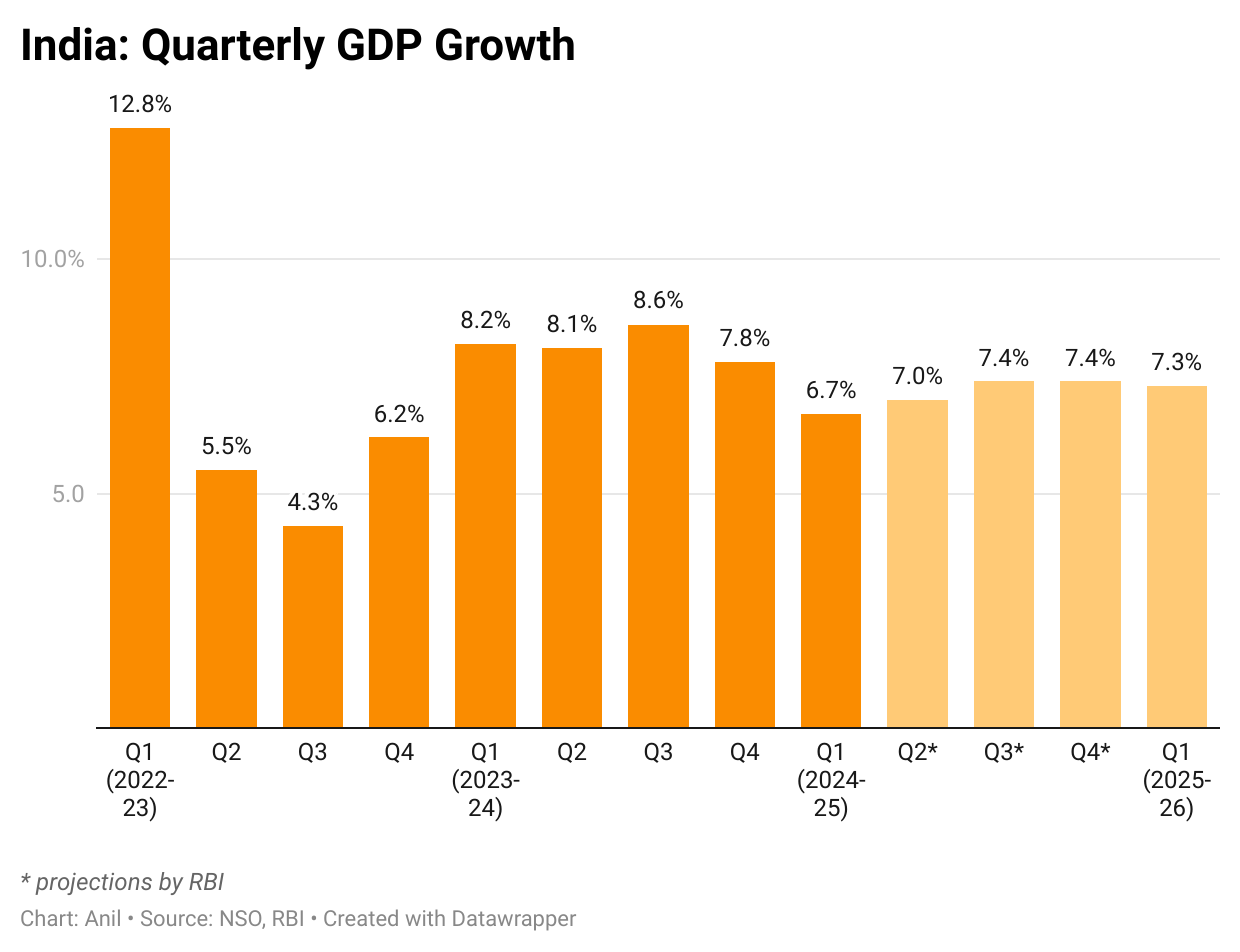 “The NSO has placed India’s GDP growth at 6.7% in Q1 of 2024-25.